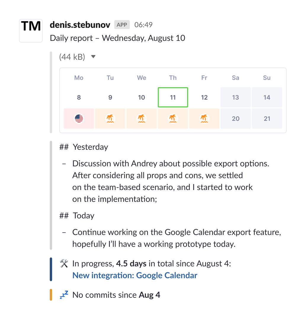 Because time tracking is based on historical data, it works back in time. You'll get accurate time reports for previous months — even if you just connected Teamplify today.