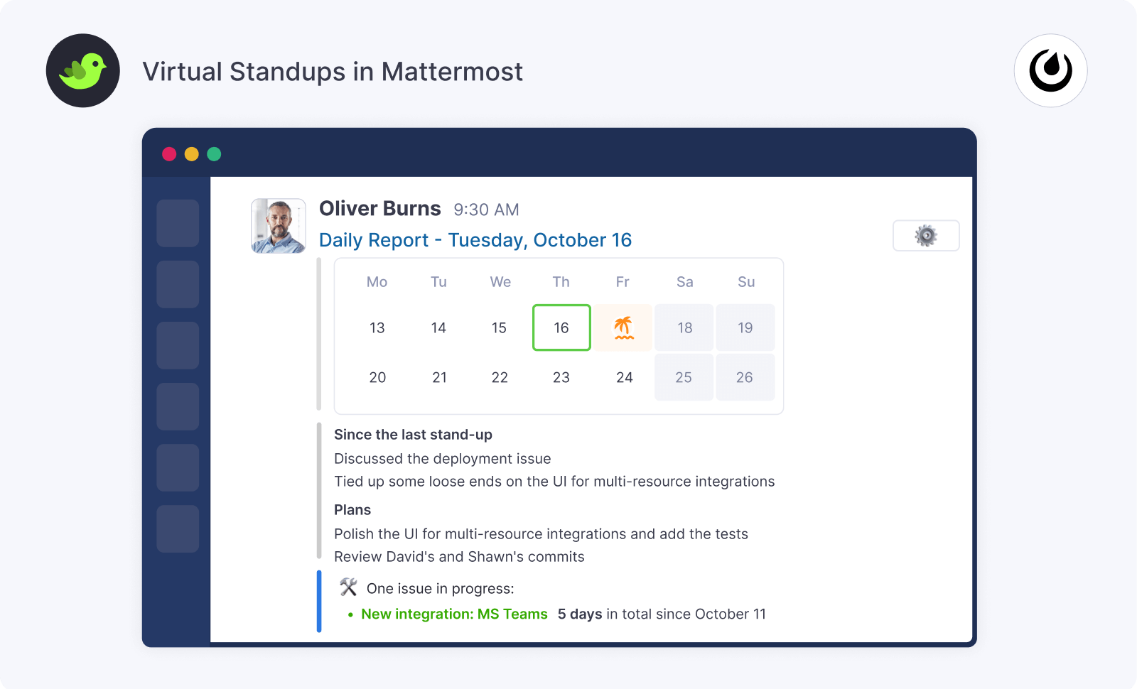 See scheduled time off in Virtual Standup reports in Mattermost and plan
